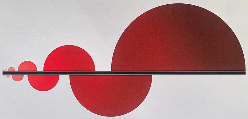 “I started to make a Fibonacci painting based on the semicircles,” Hürsch said. He added more semicircles red and black, arcing out in ever-larger curves along the precise mathematical ratio that defines his work. The design — which Hürsch was still polishing at the time of interview — aims to deliver a sense of harmony, scale, and progression, but “the gold one is where it all begins. That’s the seed where the Fibonacci numbers start, then they grow exponentially to infinity.”