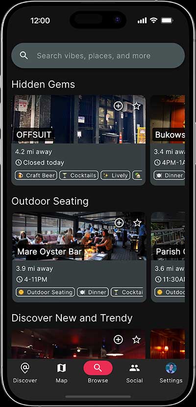 “Atmosphere is an app to help people find hidden-gem bars and restaurants based on vibe,” Marcinkiewicz said. “Like a dimly lit cocktail bar or a Chinese place downtown with a rooftop — ways that a local might describe a local place.”